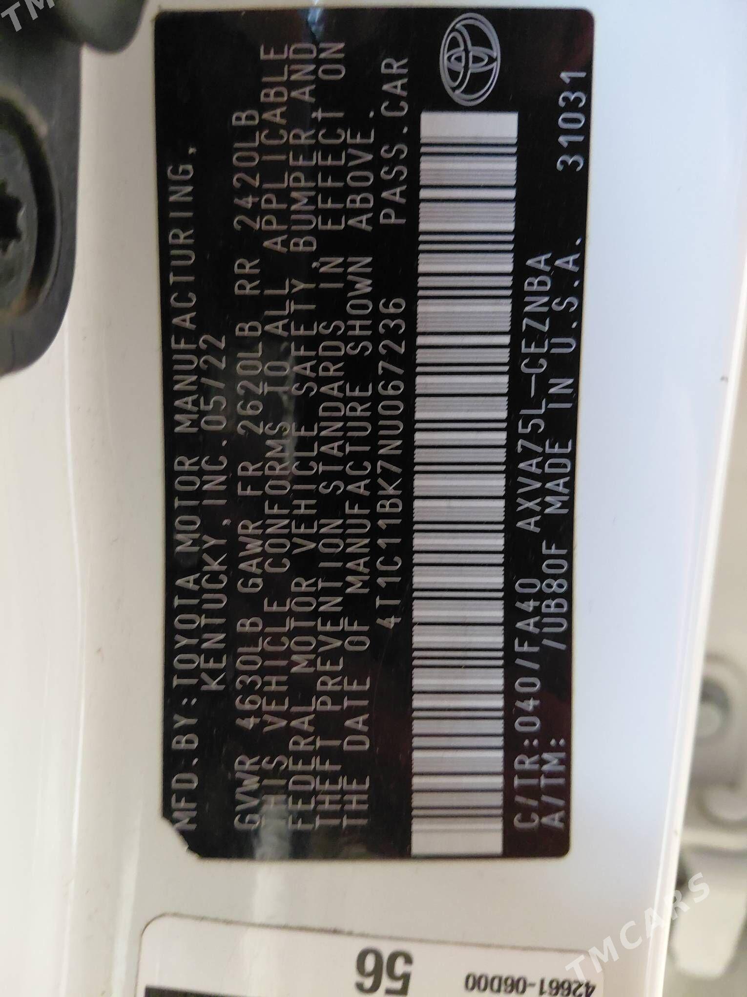 Toyota Camry 2022/05 amerkanka 50 müñ probeg radnoy ak 4teker michelin komplekt 3rezim eco norm sport (hold)(auto park) antiradar palasa distanciya datciklary hemmezat ba hemme taraplayyn tayyn arassaja masyn islendik ussanyza barladyp bilyaniz kem osibka yok bahada onusyk bolar obmen bar Habarlaşmak üçin