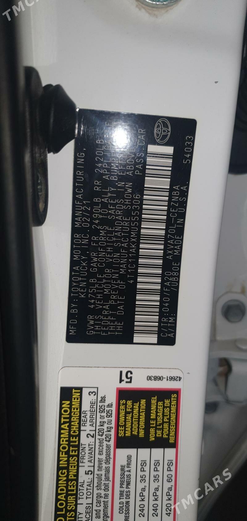 | VIN : 4T1C11AKXMU555306 |