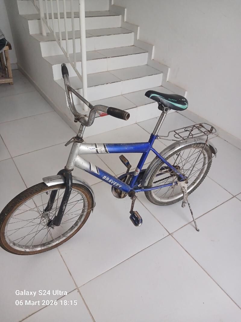 3 sag öňBasda cykan agyr gaty demirli welosiped kan surulman duran. Kemcilik y...