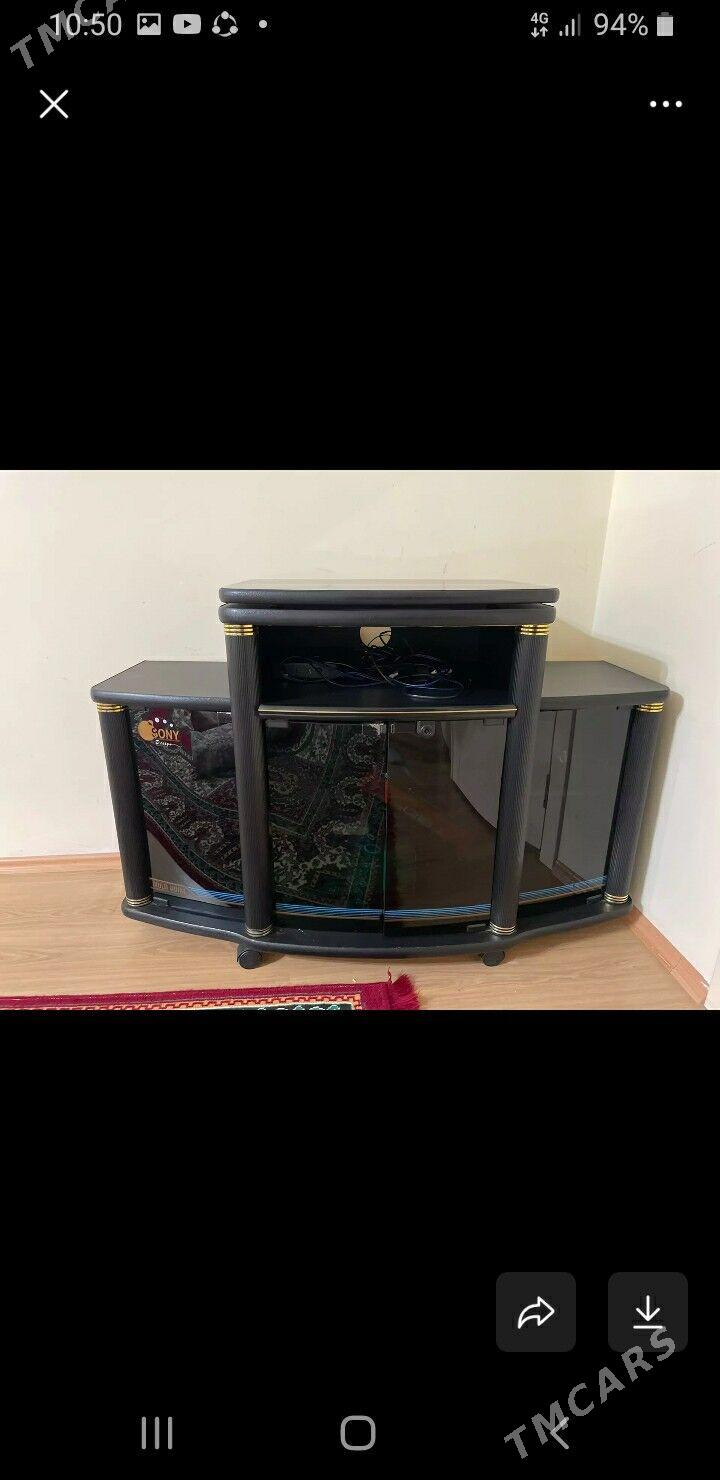 22 sag öňПодставка под телевизор стеклянная чёрная, наверху рисунок.Есть полочк...
