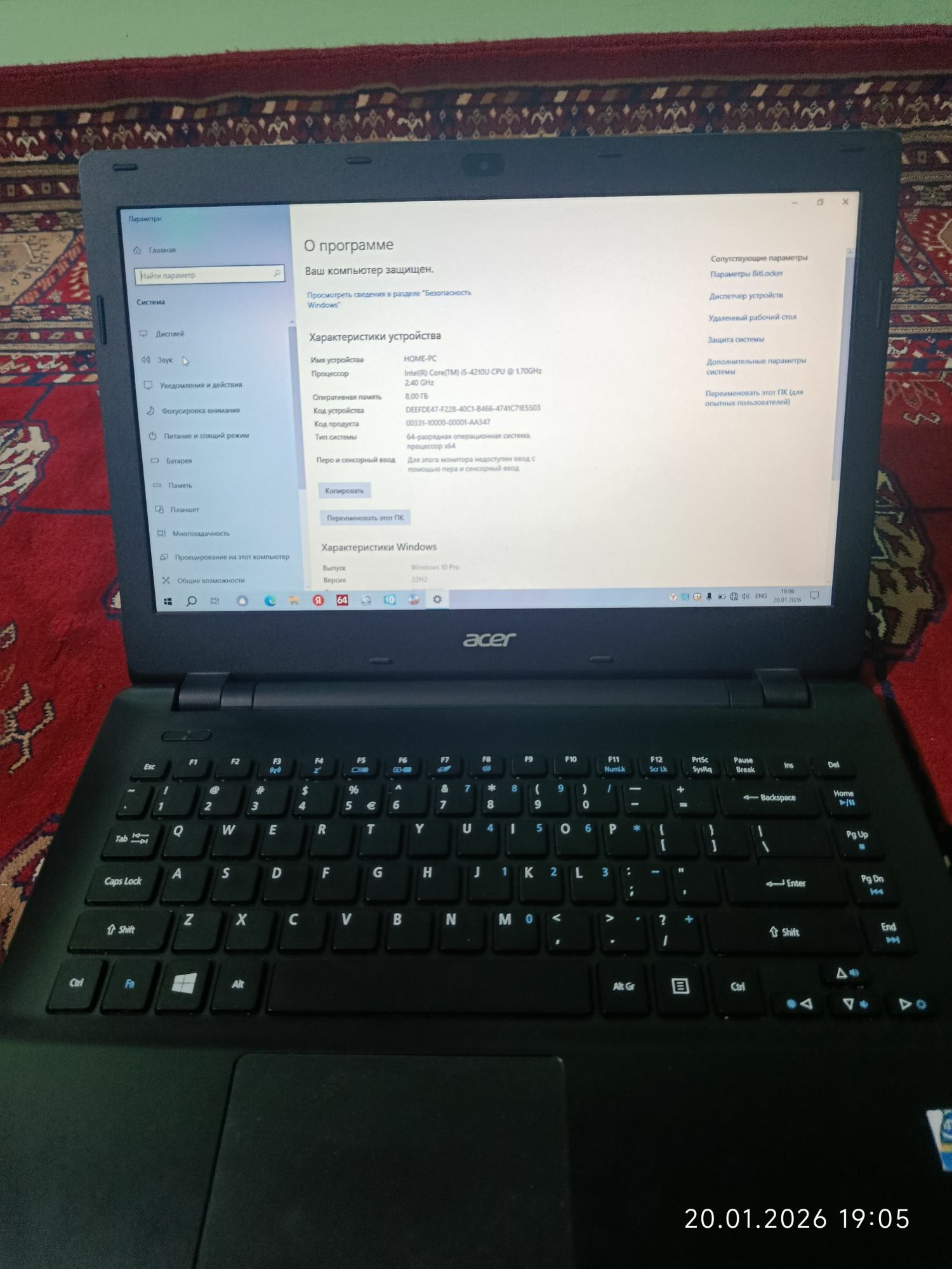 3 sag öňAcer core i5 ram 8 video carta2gbt pamyat 500gbt zaryat 4-5sagat sakla...