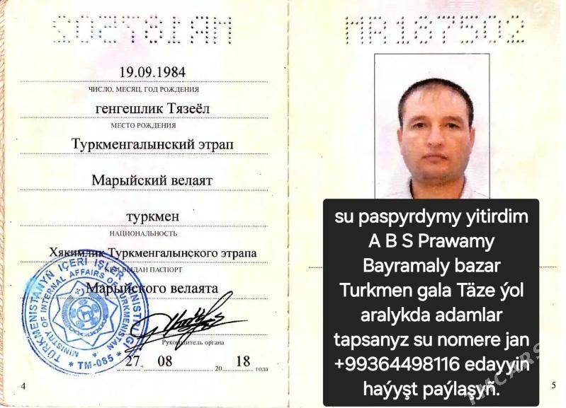 | Kategoriýa : Ýitirilen we tapylan / Ýiten |