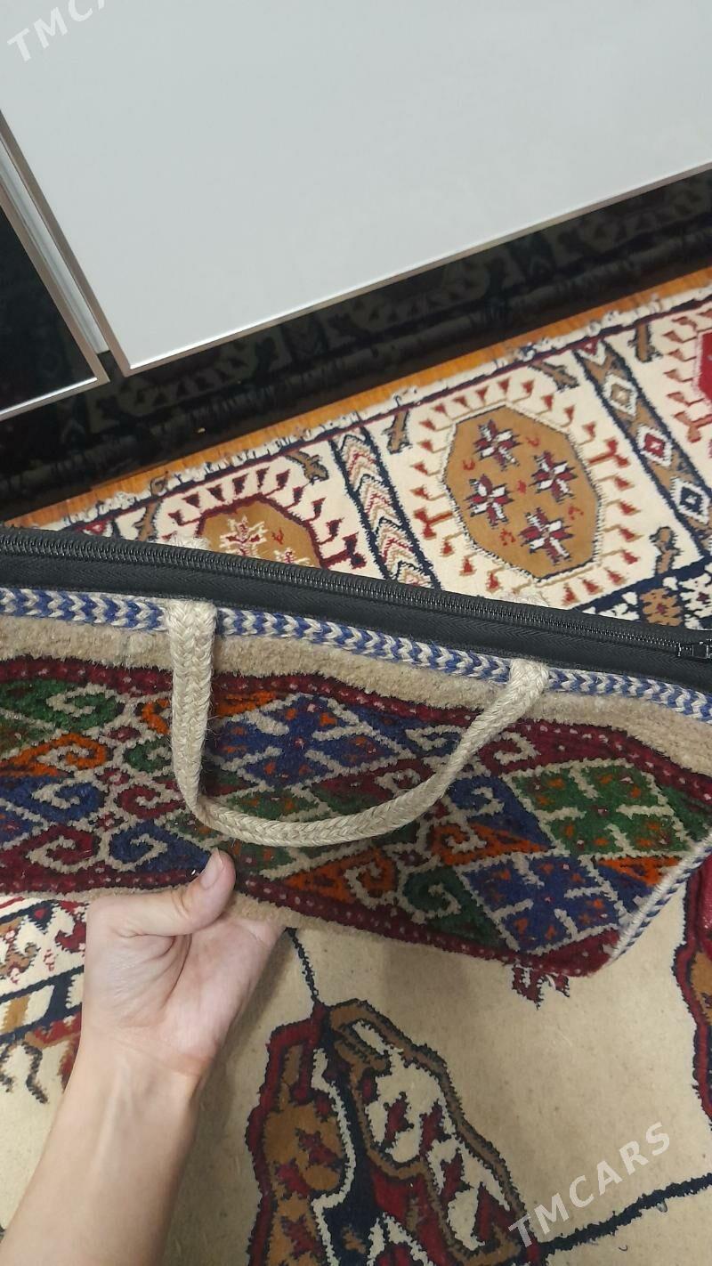 3 sag öňbiraz ullanylan,yüñden elde dokalan haly sumka 200 mnt, kakma gapjyk 7...