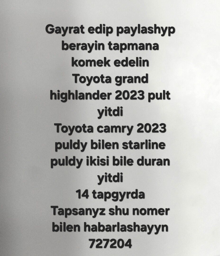 18.01.2026opel maşynyň açaryny ýitirdim daşynda tergan podkluçnikli ýanyndada ýe...