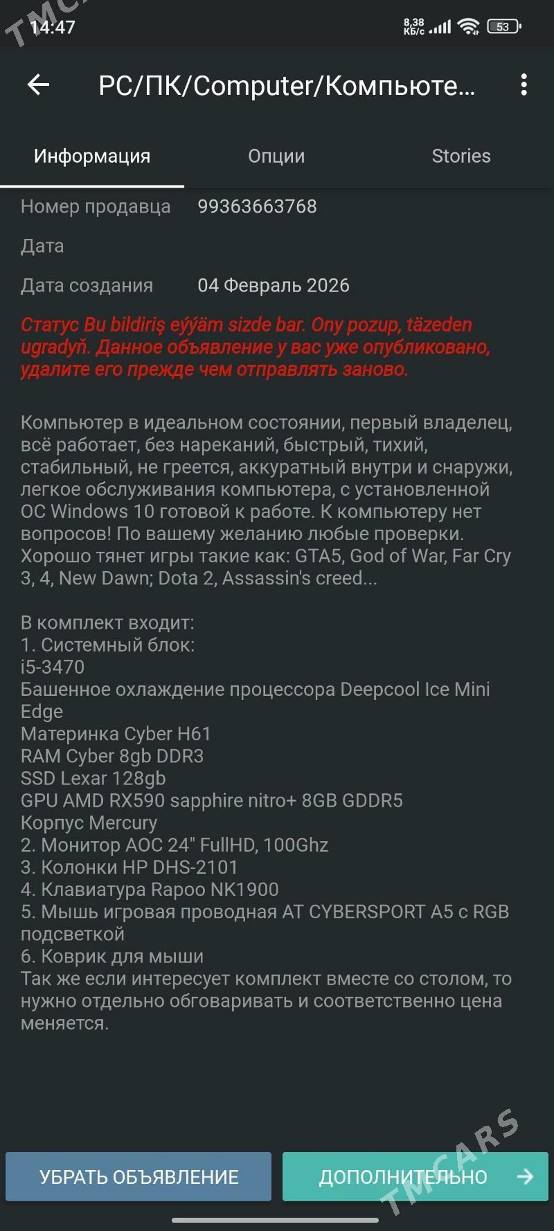 15 sag öňИгровой компьютер (Igrawoy kompyuter): MSI Монитор: GAMEBOOSTER 24"inc...