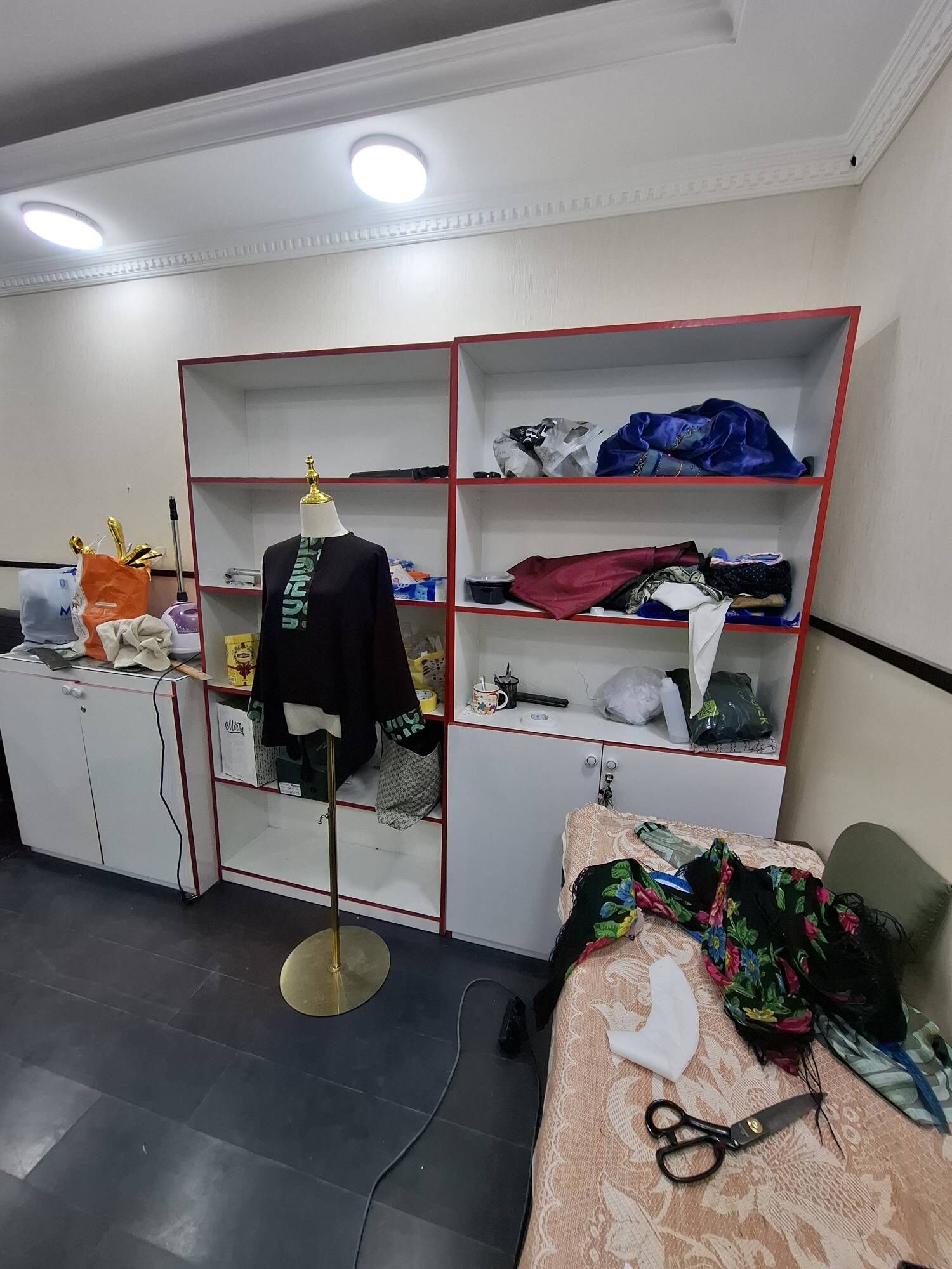 6 sag öňMagazin üçin Ak uly polkalar bar 6 sany, Aýnaly witrinalar bar gapyly...