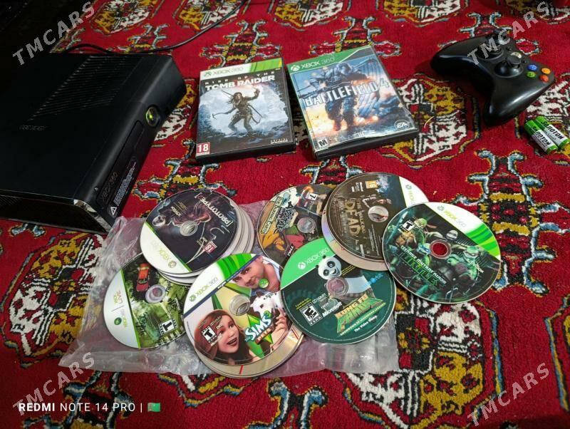 16 sag öňXBOX 360 SLIM, 2 sany simsiz joýstikler bar, 2 sany joýstik üçin kabel...