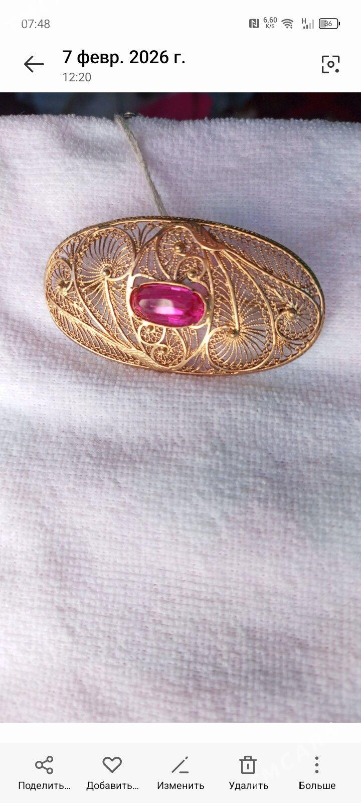 3 sag öňgyzyl ýerewan sirkon gaşly broşka 585pr 10gr Aşgabat şäher içine 30m D...