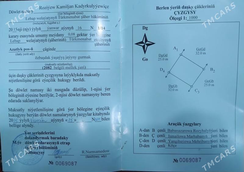 10 sag öňsatlyk mellek yeri zil pasyoluk geday arygyn gapdaly 12 sotok gyssagly...