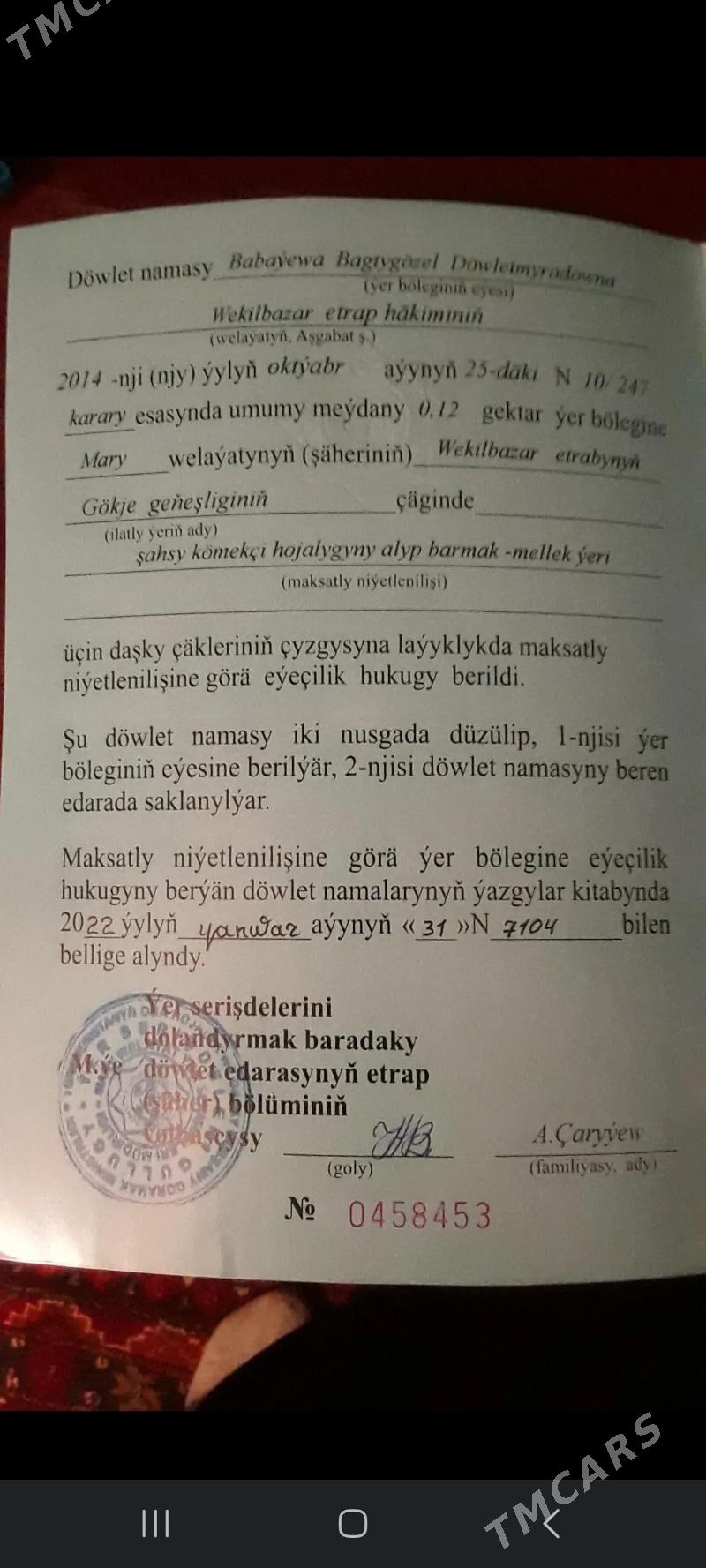 | Ýeri : Mary welaýaty / Wekilbazar |