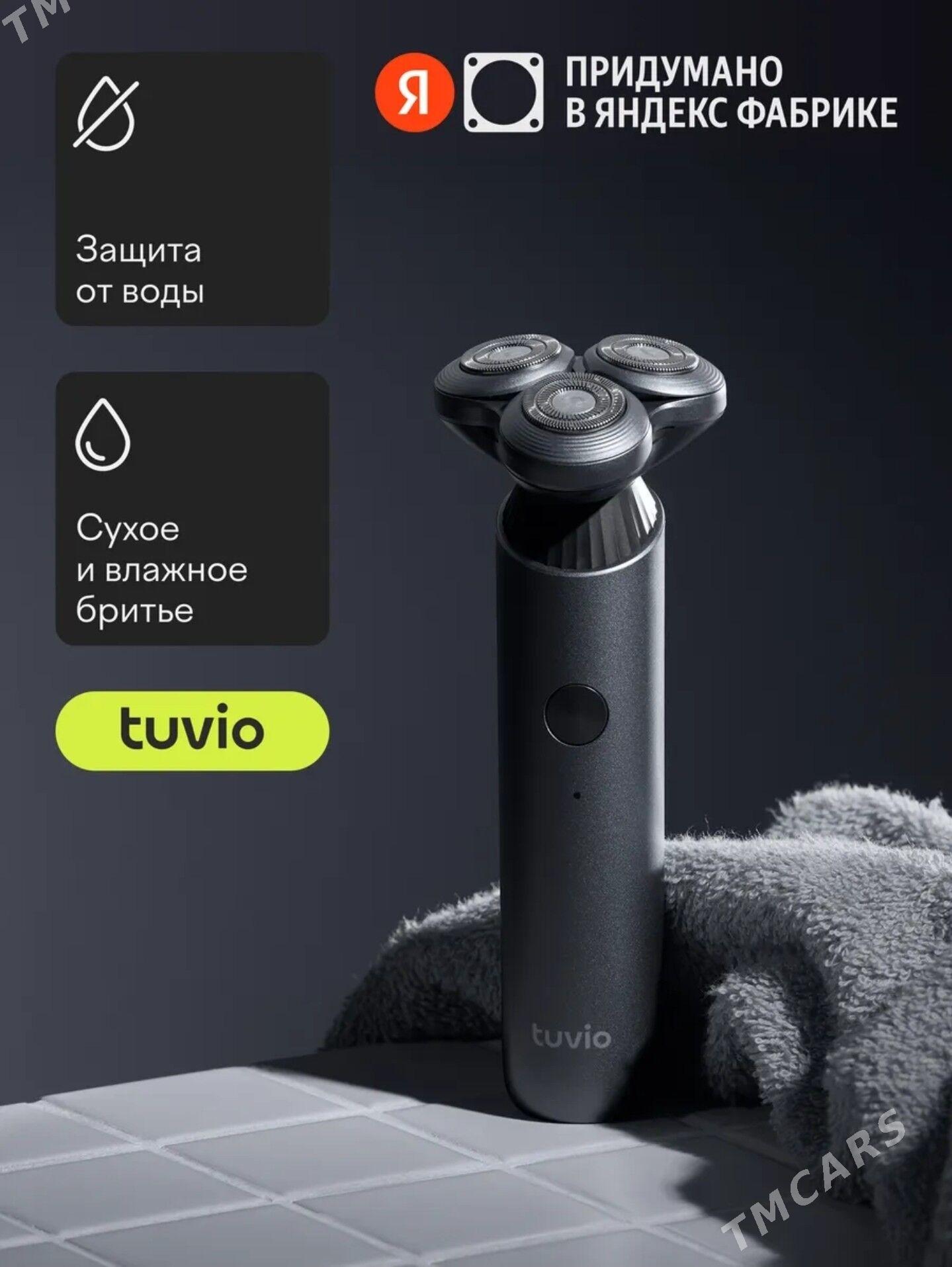 Электробритва Tuvio с 3 плавающими головками | Сухое и влажное бритьё | Защита от воды | USB-C зарядка Идеально гладкое бритьё каждый день за несколько минут. Электробритва Tuvio, разработанная в Яндекс Фабрике, сочетает современный дизайн, мощный мотор и точные лезвия для комфортного бритья. Подходит для ежедневного ухода Быстрое и аккуратное бритьё Удобно брать в дорогу Почему стоит выбрать эту бритву Острые лезвия для идеальной гладкости Три роторные головки точно повторяют контуры лица. Сухое и влажное бритьё Можно использовать с пеной, гелем или без них. Защита от воды Бритву легко промывать под водой. Мощный скоростной мотор Быстро и эффективно удаляет даже густую щетину. До 60 минут работы без подзарядки Одного заряда хватает на несколько дней использования. 🧔 Комфортное бритьё каждый день Плавающая система головок адаптируется к форме лица и обеспечивает: мягкое скольжение аккуратное удаление щетины меньше раздражения кожи Подходит для: ежедневного бритья путешествий работы и командировок Удобная зарядка Современный разъём USB-C Можно заряжать от: зарядки телефона ноутбука Power Bank 🧼 Лёгкий уход Бритва имеет съёмный магнитный модуль, поэтому её легко чистить. Просто: 1️⃣ снимите головку 2️⃣ промойте под водой 3️⃣ установите обратно Характеристики Тип устройства: электрическая бритва Тип бритья: сухое и влажное Система бритья: роторная Количество бритвенных головок: 3 Плавающая головка: есть Защита от воды: есть Тип аккумулятора: Li-Ion Время работы: до 60 минут Время зарядки: 60 минут Разъём зарядки: USB-C Питание: аккумулятор / сеть Цвет: серебристый Размеры Высота: 16 см Ширина: 6 см Глубина: 5.9 см Вес с упаковкой: 396 г Комплектация Электробритва Tuvio 🧴 Защитная крышка Кабель USB-C 🧹 Щётка для чистки Инструкция Отличный подарок Подойдёт для: подарка мужчине дня рождения Нового года ежедневного ухода Tuvio elektrik britwa | 3 aýlanýan başlyk | Gury we çygly britwe | USB-C zarýad Her gün arassa we tekiz britwe üçin ajaýyp çözgüt. Yandex fabrigi tarapyndan döredilen Tuvio elektrik britwasy güýçli motor, ýiti pyçaklar we döwrebap dizaýn bilen üpjün edilen. Her gün ulanmak üçin amatly Çalt we takyk britwe Syýahat üçin amatly Näme üçin saýlamaly Ýiti pyçaklar 3 sany aýlanýan başlyk ýüzüň formasyna laýyk bolýar. Gury we çygly britwe Köpük ýa-da gel bilen hem ulanyp bolýar. Suwdan gorag Britwany suwuň aşagynda ýuwup bolýar. Güýçli motor Galyň sakgaly hem aňsat aýyrýar. 60 minut çenli iş wagty Bir zarýad birnäçe gün ýeterlik bolýar. 🧔 Rahat britwe Plawuşiy başlyklar ýüzüň formasyna laýyk bolup: deri gyjyndyrmasyny azaldýar tekiz britwe berýär amatly ulanylyş üpjün edýär USB-C zarýad Britwany zarýadlap bolýar: telefon adapterinden noutbukdan Power Bank arkaly 🧼 Ýeňil arassalama Britwada aýrylýan magnit moduly bar. Arassalamak üçin: 1️⃣ başlygyny aýyryň 2️⃣ suwuň aşagynda ýuwuň 3️⃣ yzyna goýuň Tehniki maglumat Enjam görnüşi: elektrik britwa Britwe görnüşi: gury / çygly Sistemasy: rotasion Başlyk sany: 3 Plawuşiy başlyk: bar Suwdan gorag: bar Batareýa: Li-Ion Iş wagty: 60 minut Zarýad wagty: 60 minut Zarýad porty: USB-C Reňki: kümüş Komplekt Elektrik britwa 🧴 Gorag gapagy USB-C kabel 🧹 Arassalama çotgasy Instruksiýa