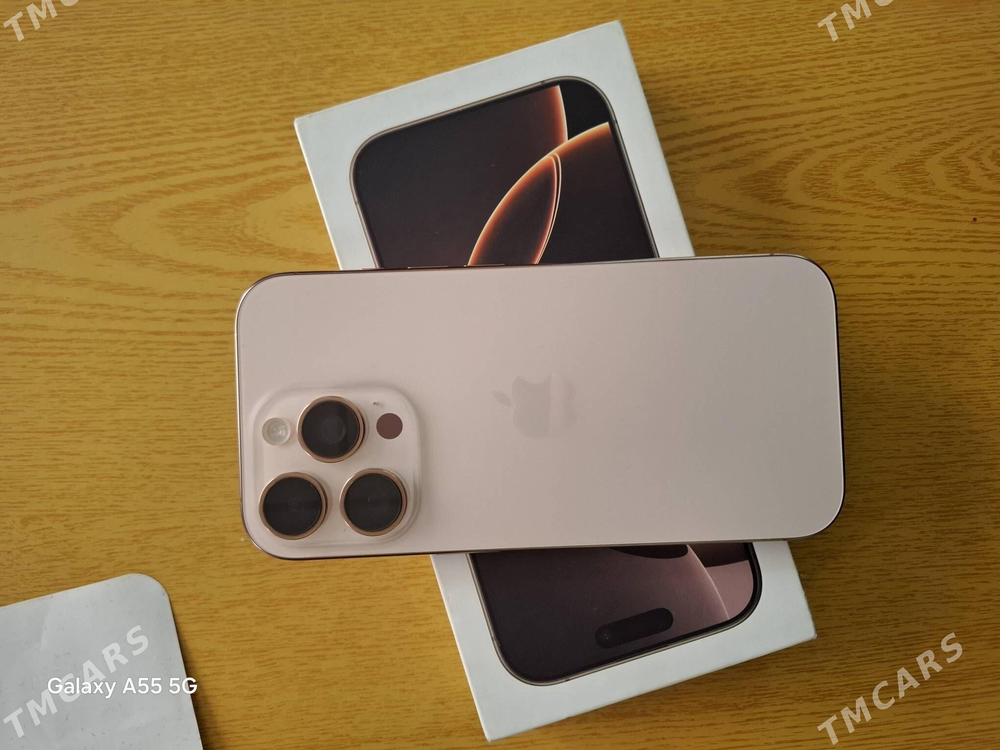 şu wagtiPhone 16 Pro Max 96256gb Kem ÿok Desert renk. Karopka Usb bar. Yag...