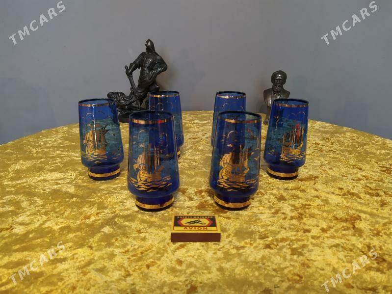 Полный набор кобальтовых бокалов "Корабль"