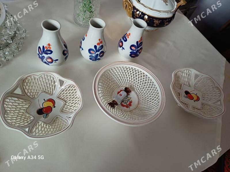3 sag öňGadym SSSR posuda, hrustal, serwiz, çaýnek, käse, tarelka, waza, staka...