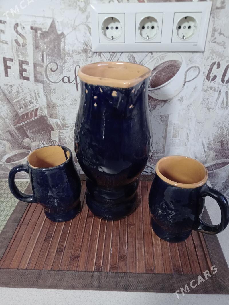 Глинянные кувшин и 2 кружки