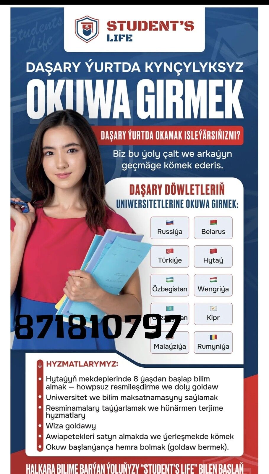 Hytaý we Türkiýe uniwersitetlerine kabul boýunça ähli tapgyrlary — resminama, wiza we ýerleşdirme prosesini bir nokatdan doly hyzmat edýäris.