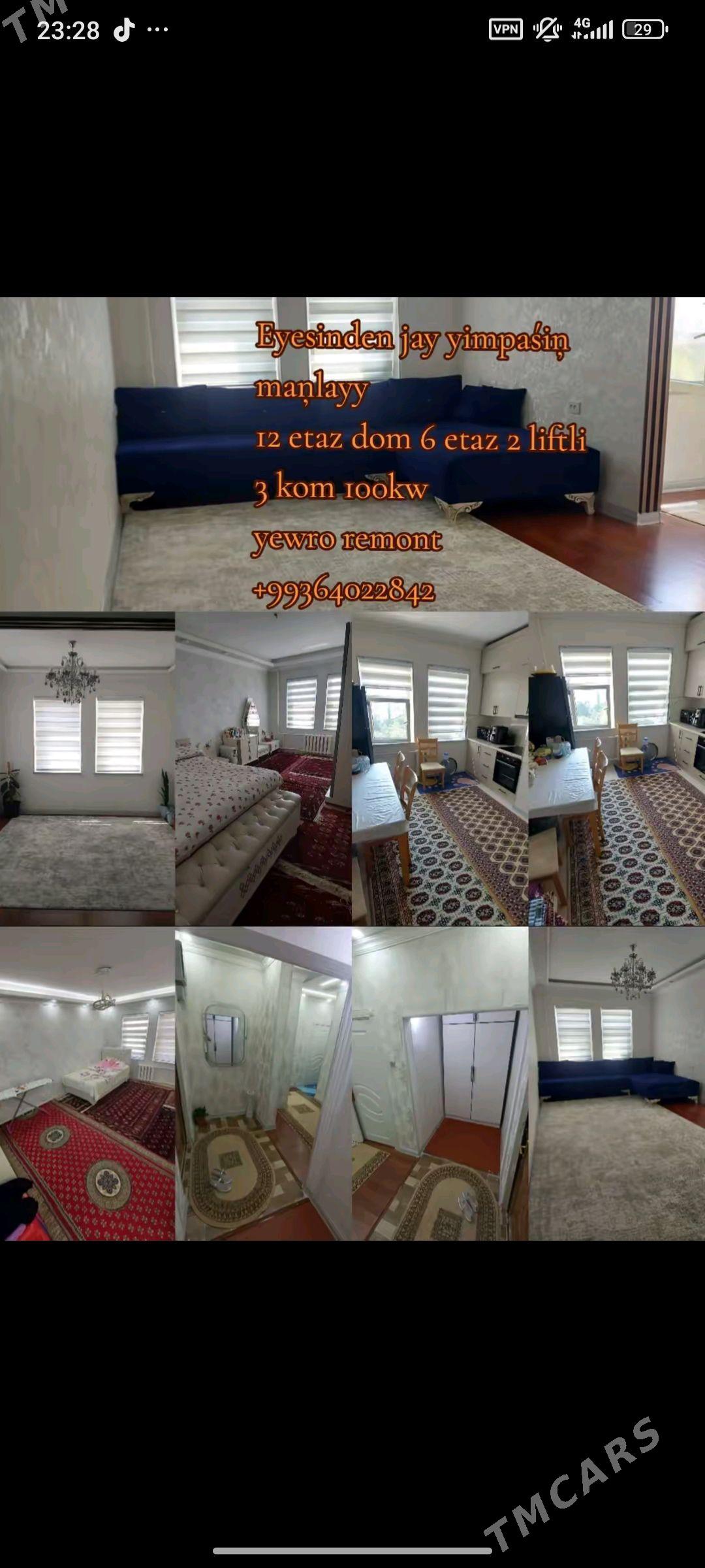 18 sag öňGurtly 3 komnat 120m² 1-nji etaž, yeri gowy Hemme goşy galyar, remon...