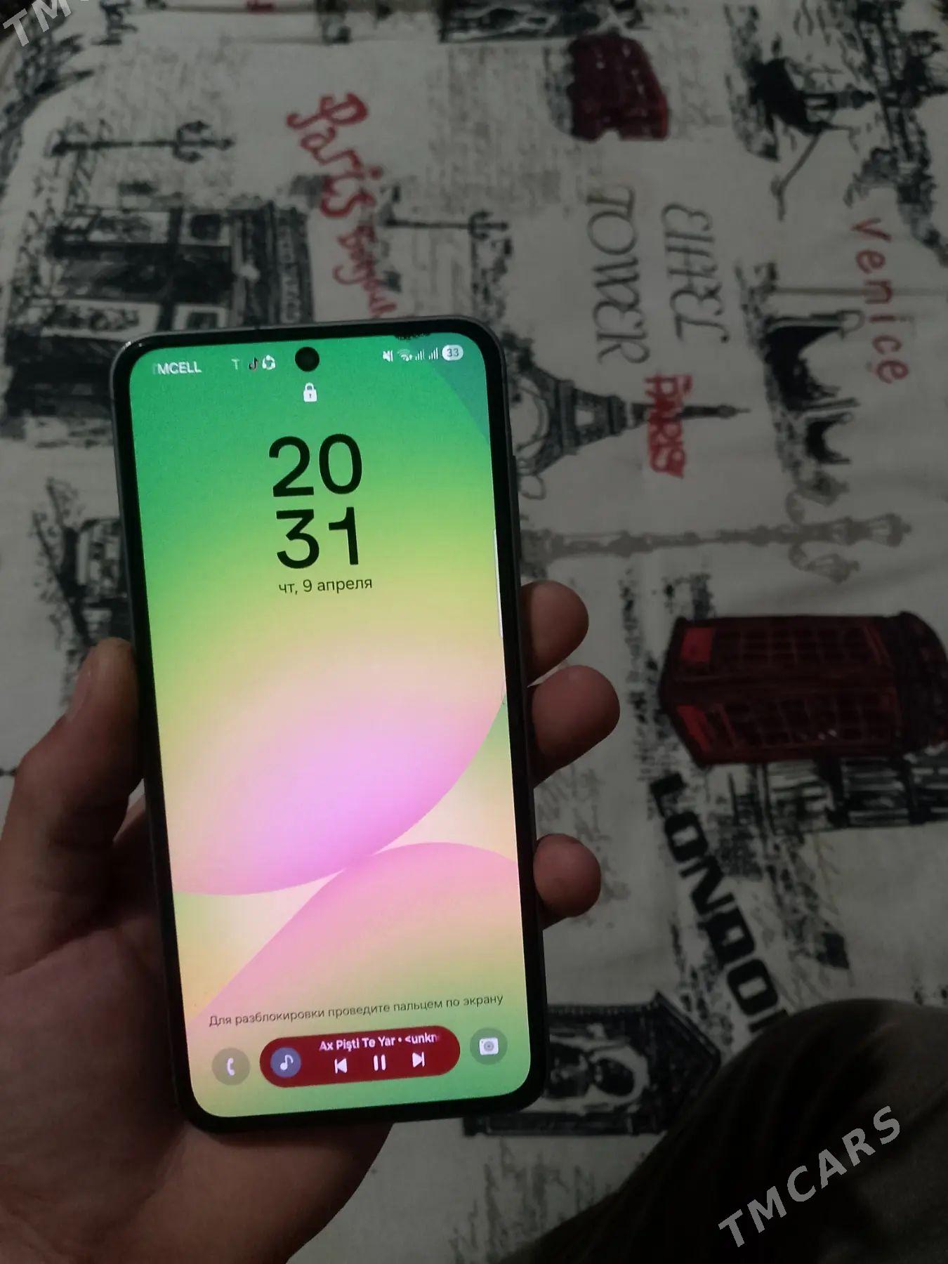 4 sag öňSamsung A56 5G, 8/128, TP ýazgyly, 1 ýyl garantiýaly, çyzyk pitno hiç ...