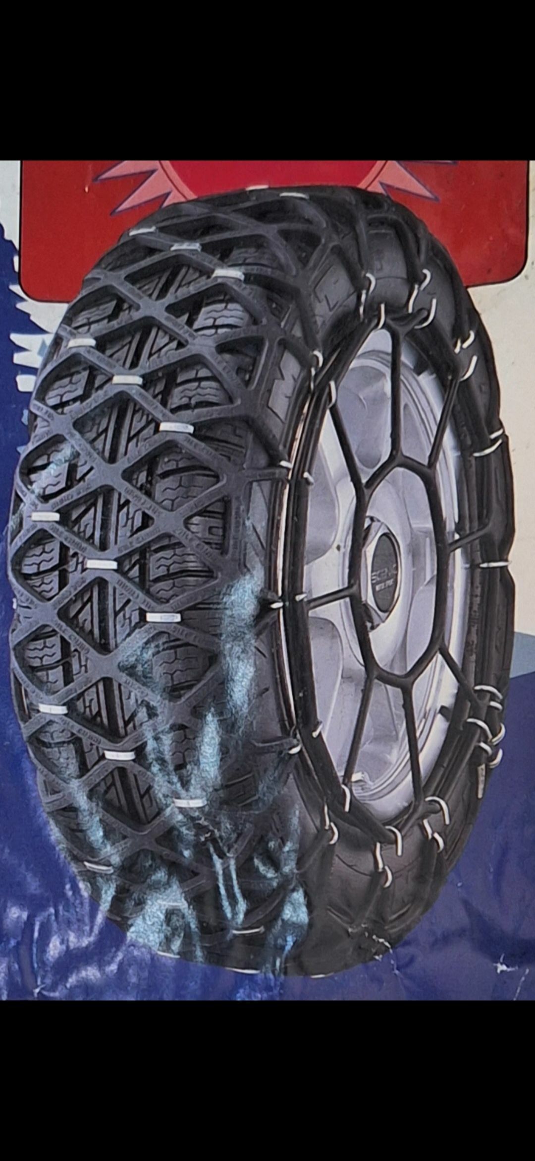 Tekere dakylýan berk kauçuk zynjyr. Daglyk-daşlyk, batgalyk, gumluk we doñaklyk ýerlerde ulanmak üçin. Zynjyr täze ulanylmadyk. Bolýan teker razmeri 185/60R14, 175/65R14.