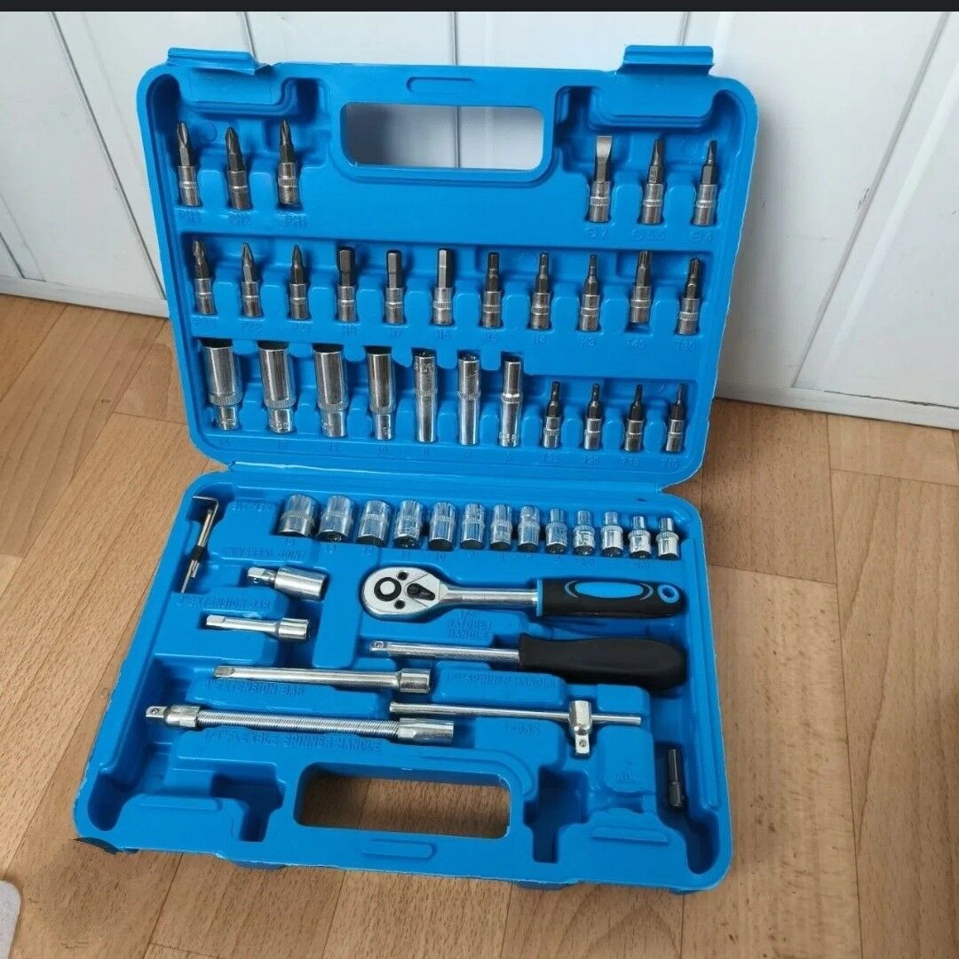 Набор инструментов для автомобиля это незаменимый комплект инструментов, который должен быть в автомобиле у каждого. Благодаря грамотной комплектации все самые необходимые предметы всегда будут у Вас под рукой. Такой набор пригодится как автолюбителям, так и профессиональным мастерам. Набор автоинструментов состоит из 53 предметов. В кейсе есть самые популярные и нужные предметы — трещоточный ключ, имбусовые ключи, торцевые головки, удлиненные головки, биты, удлинитель, отвертка и пр. Набор создан специально для автомобилистов и мастеров, поэтому в чемоданчике собраны только полезные инструменты. Каждый предмет также отличается высоким качеством и прочностью. Для изготовления инструментов используется хромированная сталь, поэтому все товары долго прослужат и справятся с разной тяжелой работой. А наличие прорезиненным ручек защитит от выскальзывания инструментов из рук. Набор инструментов идет вместе с кейсом. Такой чемоданчик защитит все инструменты от повреждений и позволит легко их носить с собой. Вы всегда можете безопасно хранить набор инструментов в автомобиле