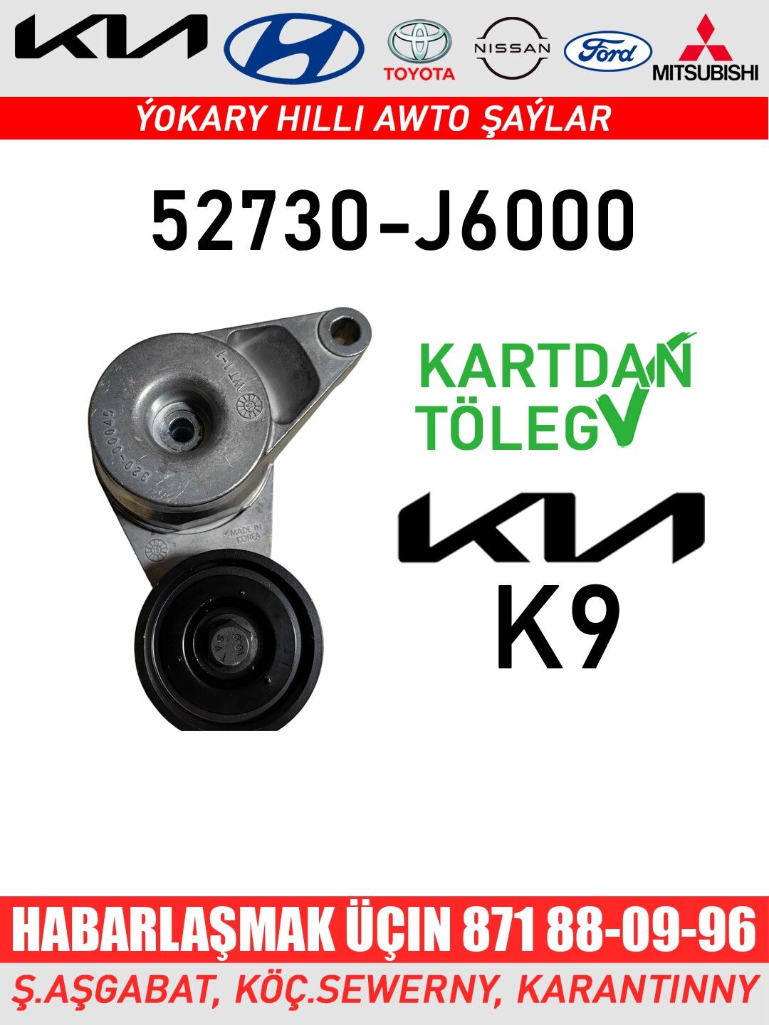 Ролик натяжителя в сборе Part no: 25281-2Е300 For: KIA K9 Durli gornusde original remenleri bizin dukanymyzdan tapyp bilersiniz ✅ Kartdan töleg 📱 +99371 88-09-96 🛍️ ş.Aşgabat, köç.Garantiýni
