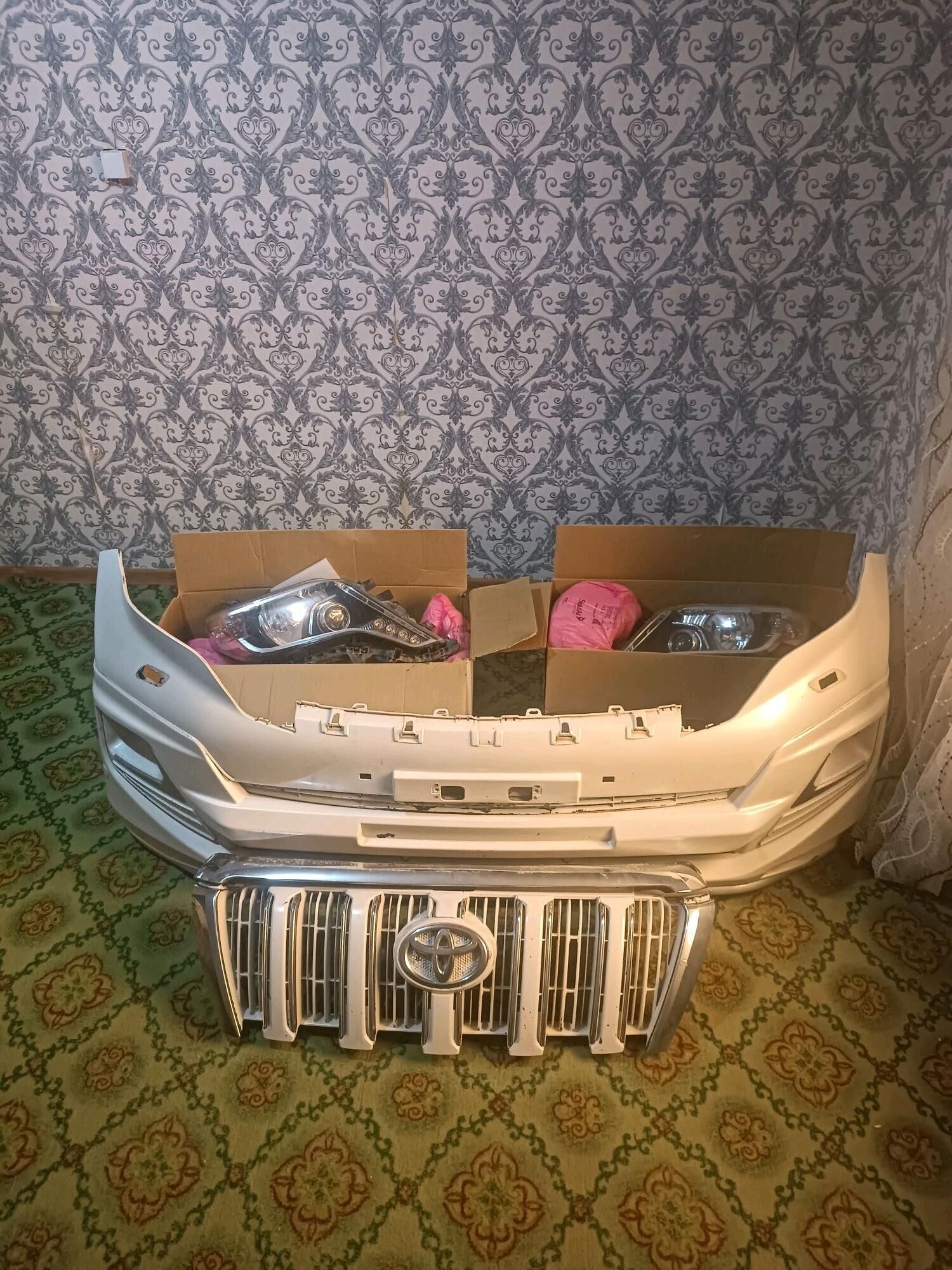 мини-морда Toyota Land Cruiser Prado 2016, арасса, абат ягдайда, ылалашык бар. Бампер, фары, облицовка. хемме гулаклары абат