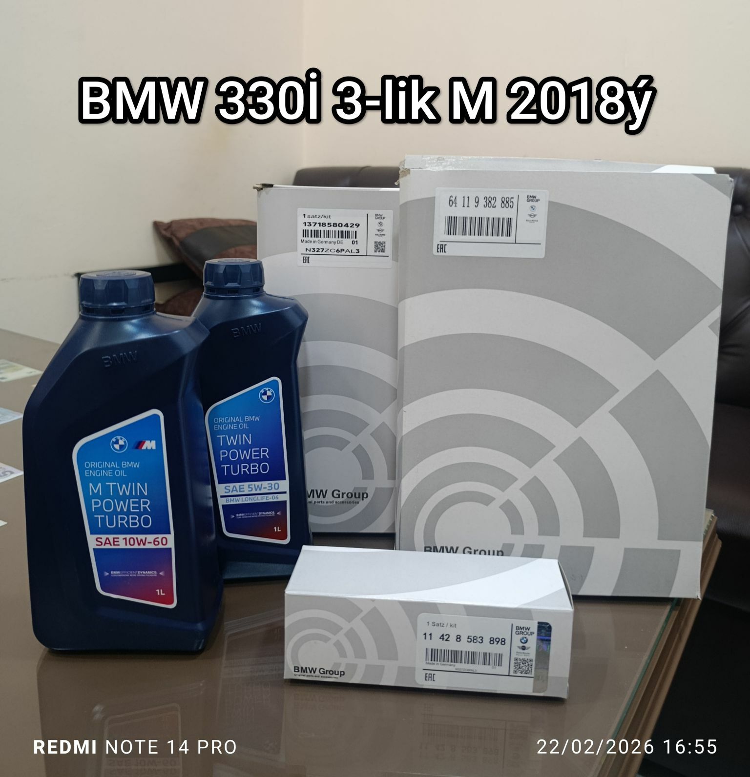 BMW 330İ 3-lik Motor 2018ý BMW GROUP ORGİNAL FİLTİRLERİ BMW ORGİNAL YAGLAR