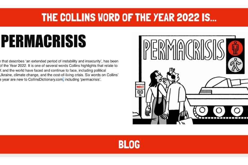 Iňlis diliniň düşündirişli sözlügini çykarýan Harper Collins neşirýaty “permacrisis” (“permakraýsiz” ýa-da “hemişelik çökgünlik”) sözüni 2022-nji ýylyň sözi diýip kesgitledi. Bu barada neşirýatyň resmi saýtynda habar berilýär diýip, TASS belleýär.