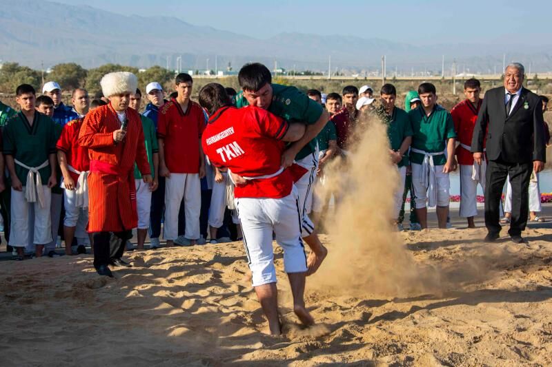 Ak öýleriň ýanynda gazanlar atarylyp, türkmen toýuna mahsus milli tagamlar taýýarlanyldy. Milli göreş, tanap çekmek, ýaglyga towusmak, küşt we şaşka boýunça geçirilen ýaryşlar ussatlary ýüze çykardy. Teatrlaşdyrylan sahna çykyşlary bilen birlikde, halk we estrada aýdymlary ýerine ýetirildi. Baýramçylyk dabarasynyň baý döredijilik keşbinde häzirki zaman türkmen sungatynyň özboluşlylygy, onuň žanrlarynyň köpugurlylygy, däp-dessurlaryň dowamatlylygy öz beýanyny tapdy.