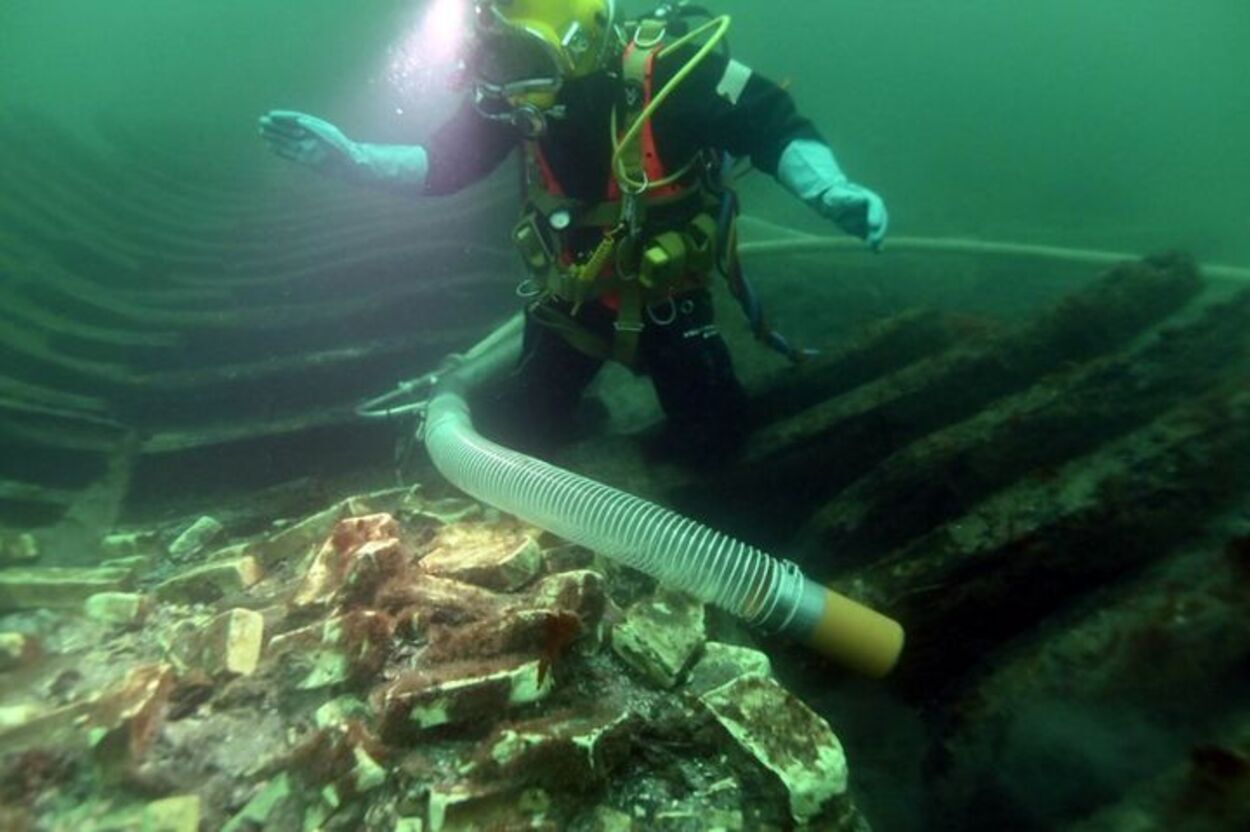 "Svælget 2" diýlip atlandyrylýan bu gämi Eresunn bogazynda, 13 metr çuňlukda ýüze çykaryldy.