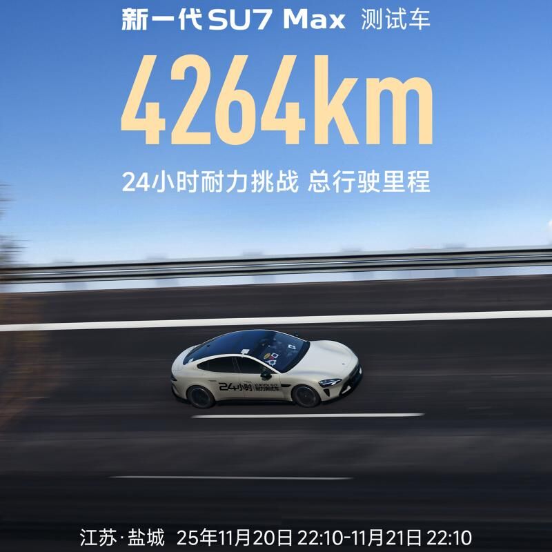 Xiaomi Auto kompaniýasy önümçilik elektromobilleri üçin täze rekord goýdy. Onuň döwrebaplaşdyrylan SU7 Max sedany 24 sagatda diňe zarýad almak üçin saklanyp, 4 264 km ýol geçdi.