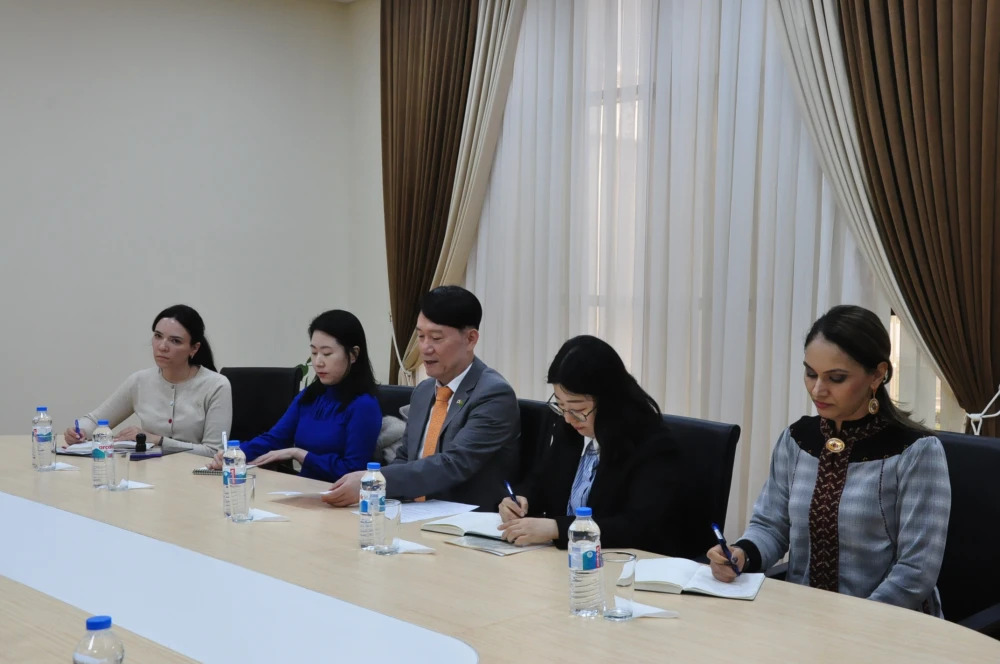 Çärä Koreýa Respublikasynyň ynanylan wekili Kim Jun Çhol we Türkmenistanyň DIM-niň Halkara gatnaşyklary institutynyň rektory Gülşat Ýusupowa gatnaşdy.