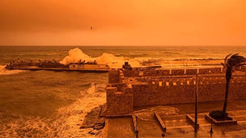 Gresiýanyň Krit adasyny Saharadan göterilen çägeli tupany getiren güýçli ýel - kalima gurşap aldy. Adanyň günorta kenary bilen Afrikanyň aralygy 300 kilometrden hem az, şonuň üçin hem şeýle hadysalaryň bolmagy bu ýerde geň däl.