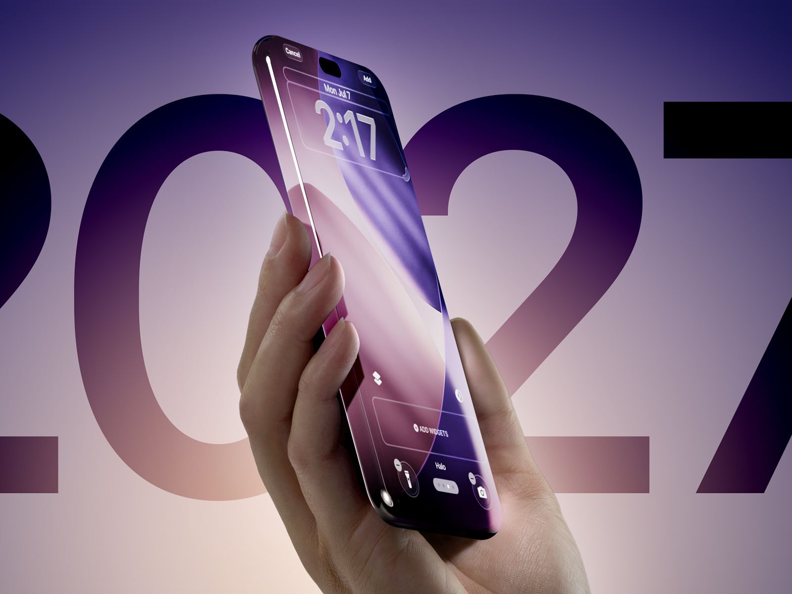 Täze tehnologiýanyň ornaşdyrylmagyny 2027-nji ýylda ilkinji iPhone-yň satuwa çykmagynyň 20 ýyllyk ýubileýine gabatlamak meýilleşdirilýär.