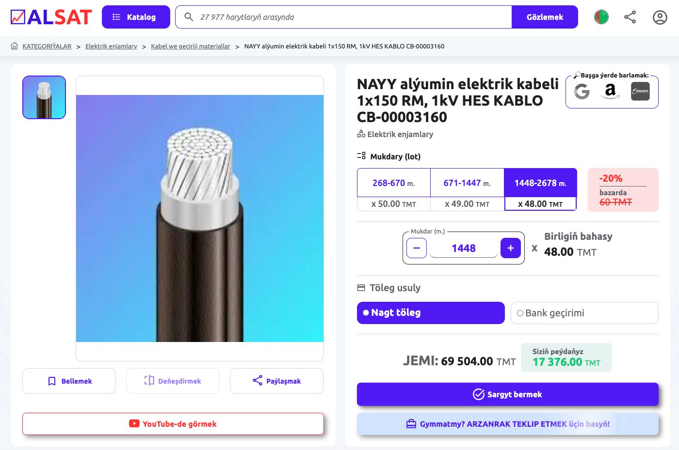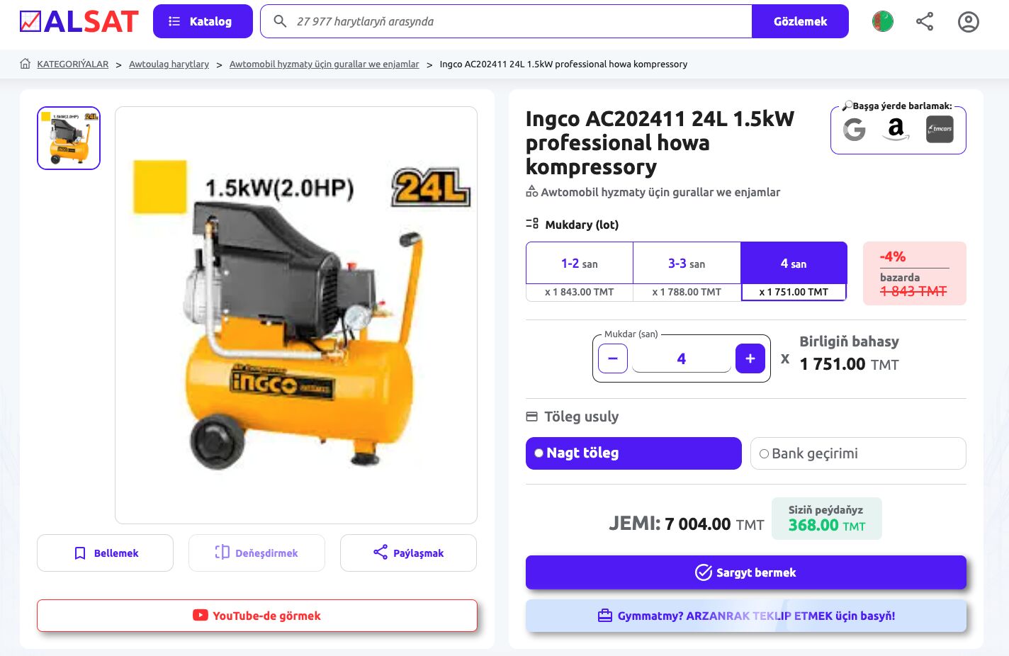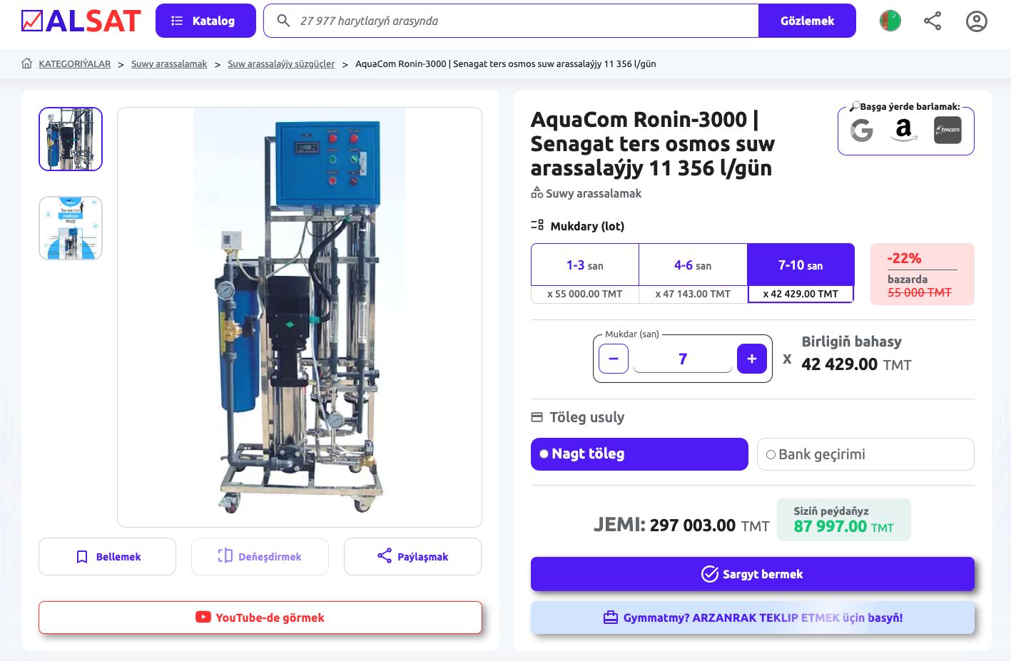 📈ALSAT-da alyjylara tekepbir aristokrat ýaly bolup, sanlara göwnüýetmezçilik bilen seredip durmagyň hajaty ýok. 📈ALSAT.com.tm-da her önümiň sahypasynda «ÖZ NYRHYŇY TEKLIP ETMEK» düwmesi bar.